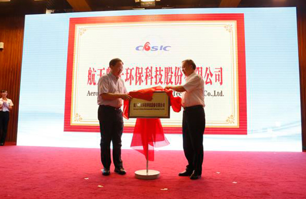 湖南省副省長張劍飛,中國航天科工集團公司黨組書記、董事長高紅衛(wèi)共同為“航天凱天環(huán)??萍脊煞萦邢薰尽苯遗啤?/p>